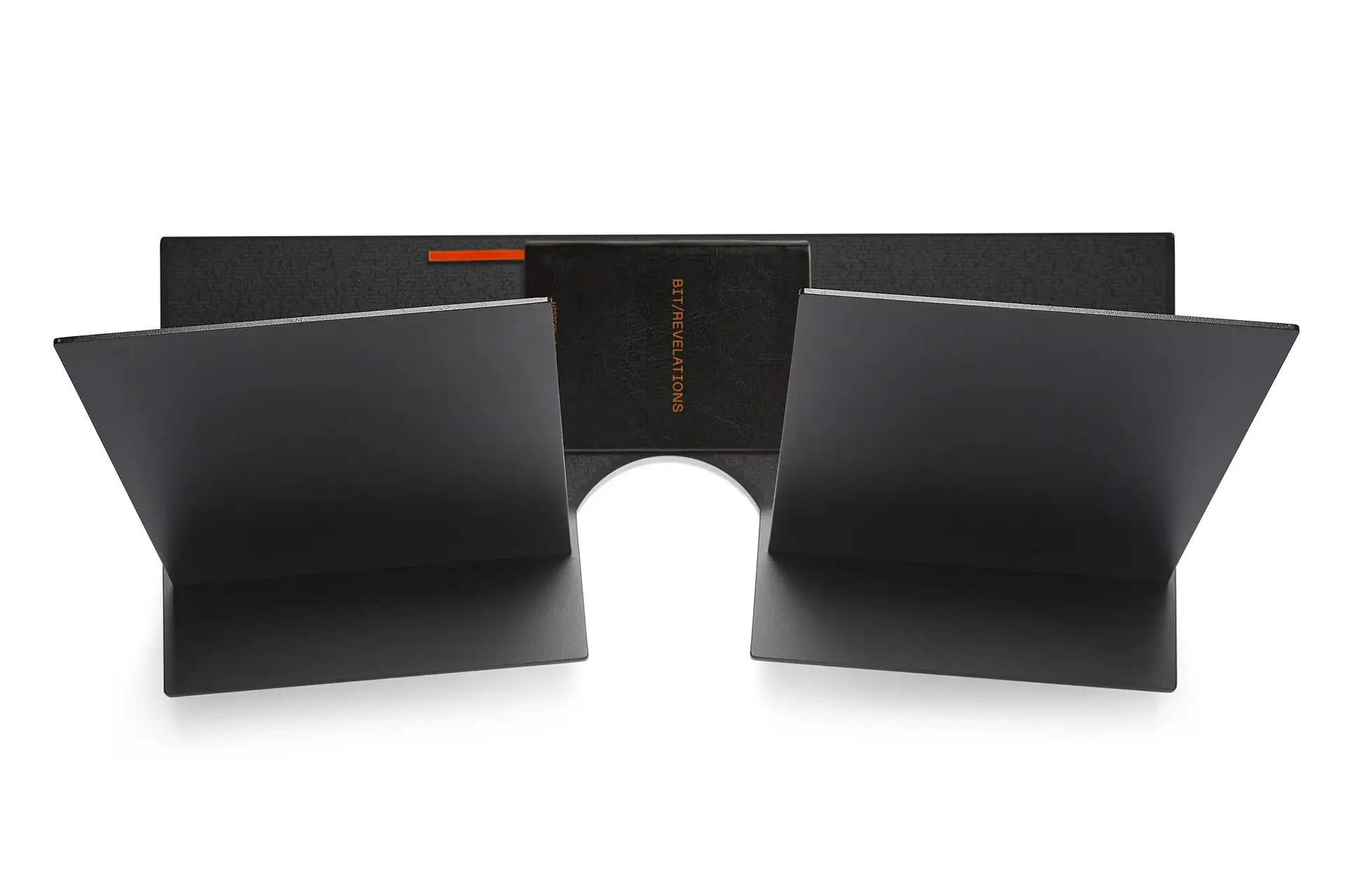 128 original artworks by world leading artists chronicle Bitcoin’s remarkable journey, each moment reimagined through a unique artistic lens. Printed on archival-grade paper and bound in orange bull leather, the volume rests on a custom steel stand engraved with Satoshi Nakamoto’s whitepaper, optimised for viewing and delivering the presence of a private Bitcoin gallery.